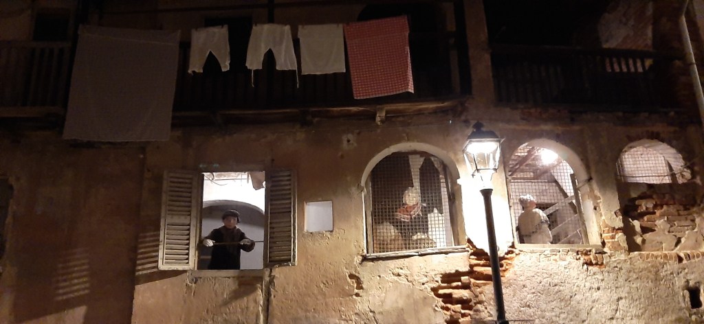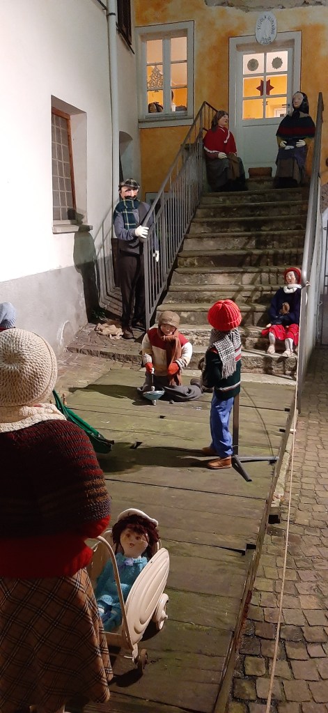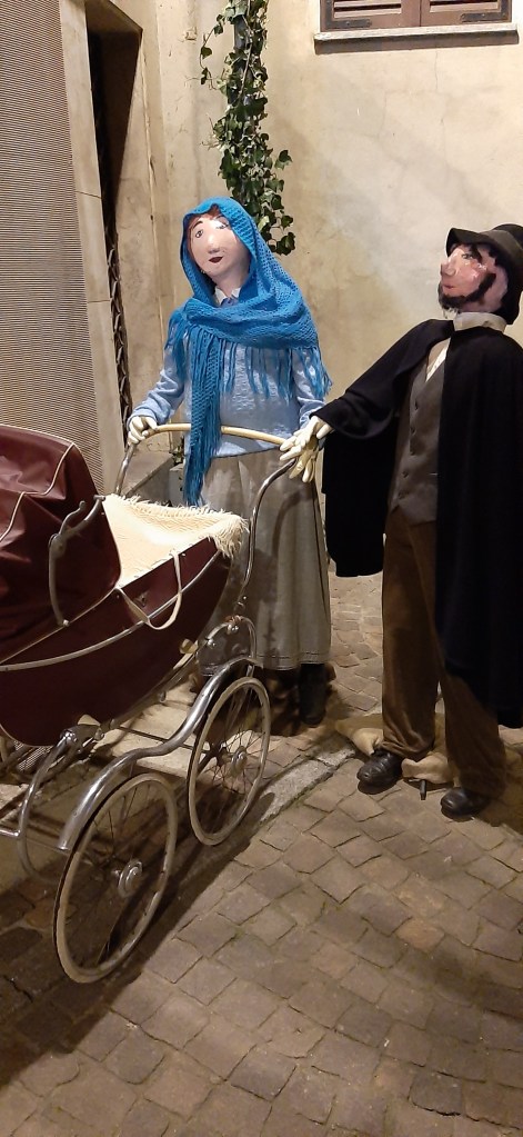 C’è un paese, Mosso, e una sua antica borgata che hanno mantenuto gli scorci del passato, le case vecchie, i viottoli lastricati, i gradini che salgono e scendono, le fontane. Si ode il rumore dei propri passi, si sente l’umidità dei boschi, si ricorda come tutto poteva essere. Lì, in quel paese lontano da ogni circuito turistico come piace a me, e dove i pochi che ci vanno conserveranno le sensazioni provate a meno di non rivelarle a chi possa capirle, viene allestito tutti gli anni uno dei più estesi presepi a grandezza naturale. Abbiamo tutti, penso, il ricordo di noi piccoli che aggiungevamo nel presepe la statuina del pastore o un piccolo gregge di pecore, e con un ultimo sguardo all’interezza della scena coglievamo l’essenza del messaggio, l’umiltà e la grandiosità. Qui, ci si trova catapultati dentro il Presepe non più come meri spettatori ma come alcune di quelle persone semplici che si recavano verso la Capanna a portare dei poveri doni. Nessuno di quelle persone, com’era un tempo, si sarebbe mai sognato di mancare col proprio omaggio e la propria preghiera. Così, ad ogni vicolo e ad ogni angolo, si trovano moltissime scenette come potevano svolgersi nei tempi di chi ci ha preceduto; una comunità fatta di mestieri antichi ormai perduti, di freddo e calore al tempo stesso, di paioli, stalle, scialli e tabarri per un po’ di riparo. Con più di 200 figure a grandezza naturale, nei cui volti possiamo riconoscere i nostri stessi cari, ci si trova calati totalmente nella vera atmosfera di Natale e nei suoi valori più autentici: povertà e gratitudine. Le anime sensibili si innamorano di quel Presepe e di quella gente comune di paese, che immagina parlare il proprio dialetto e farsi bastare un pugno di castagne o un po’ di minestra, ma che vede trascorrere la notte di Natale sulla neve per attendere la Nascita. Ecco, è tutto qui: zero negozi, zero località da esibire. Solo silenzio, ricordi, meraviglia. Tanta emozione.